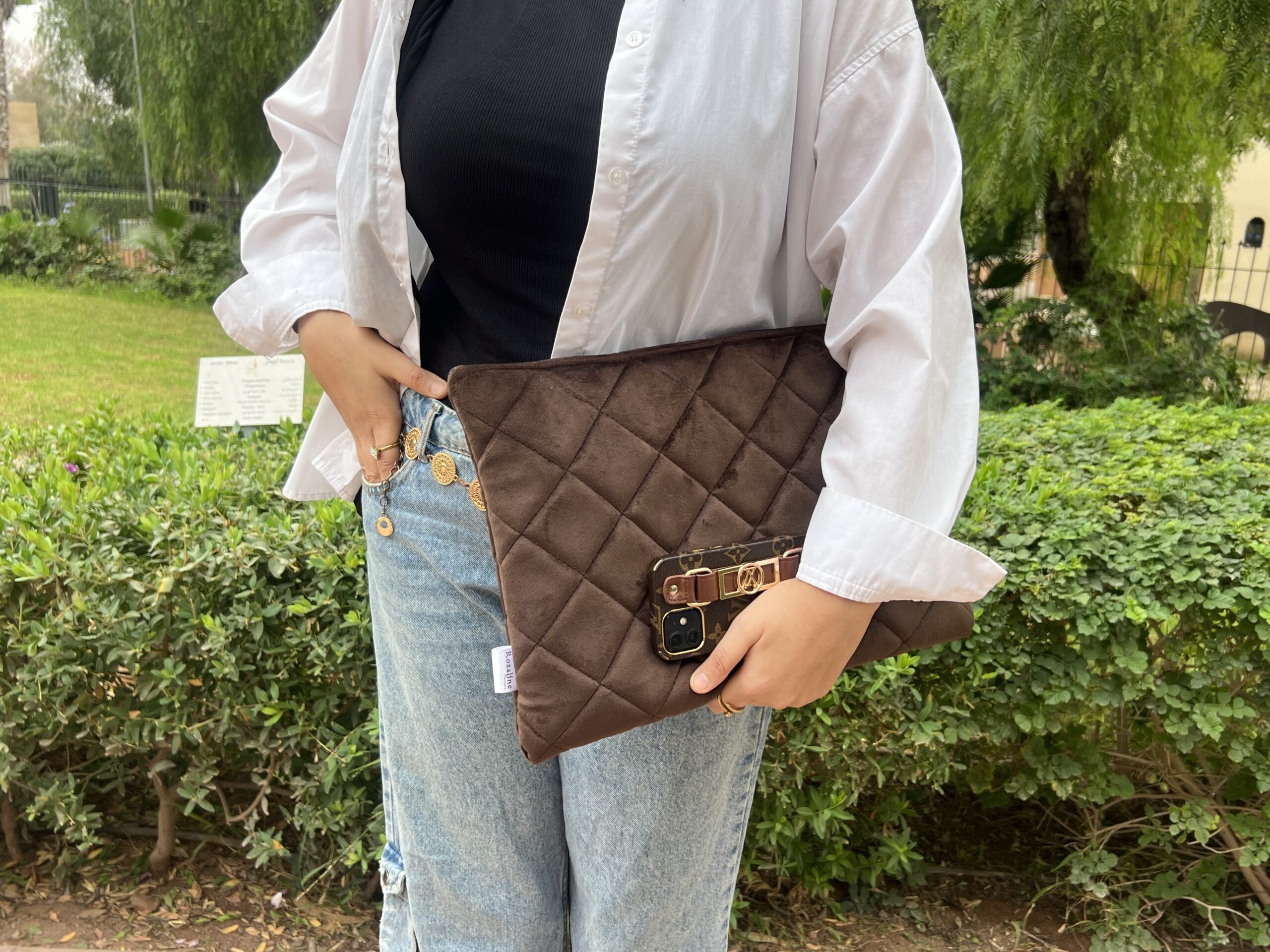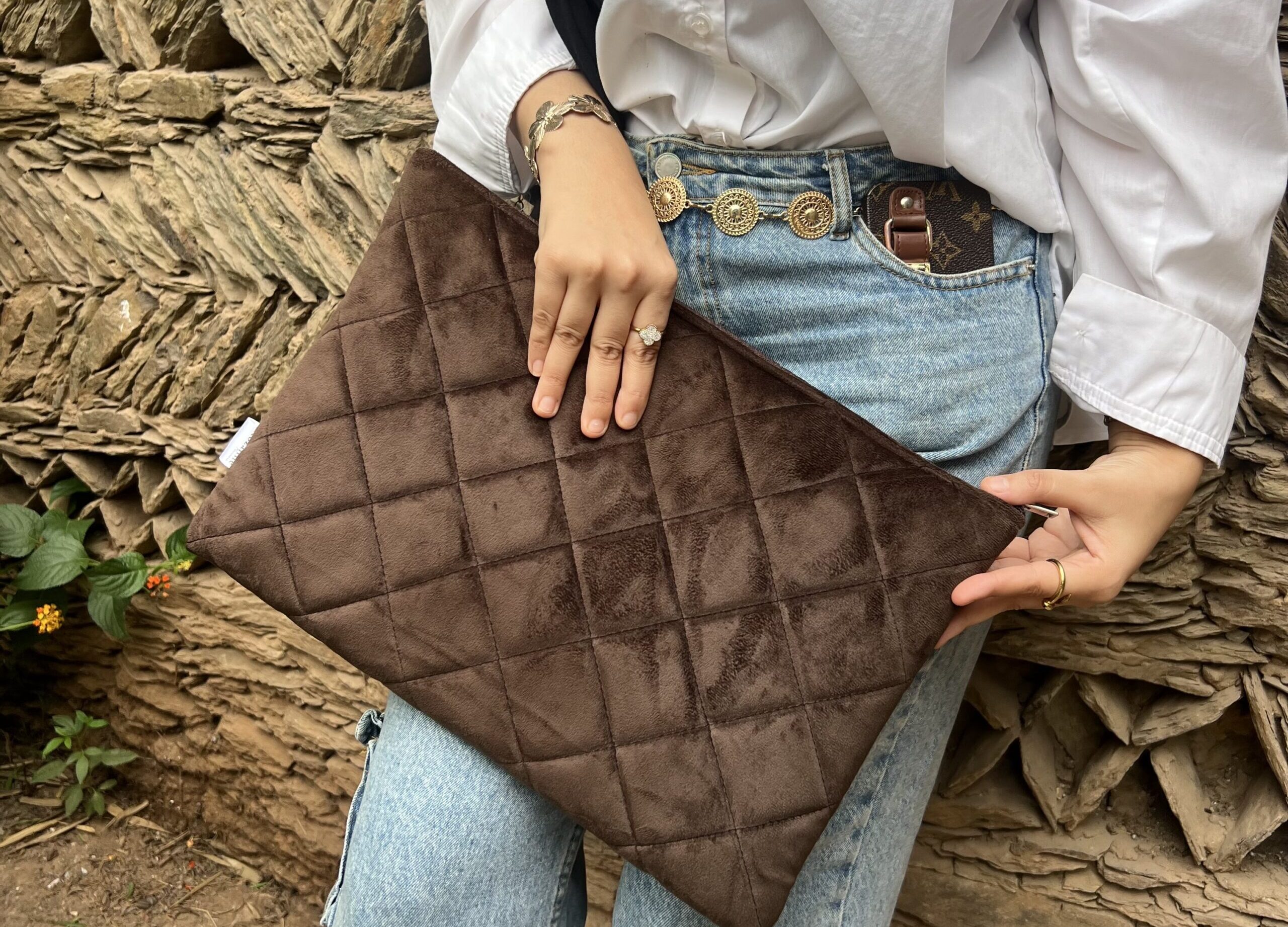Cette pochette en marron chocolat apporte une touche élégante et raffinée à votre style. Disponible en deux tailles, L et S, elle s’adapte parfaitement à vos besoins et à la taille de votre PC ou tablette. Sa couleur luxueuse se distingue subtilement tout en restant facile à assortir à vos tenues, pour un look à la fois chic et pratique.